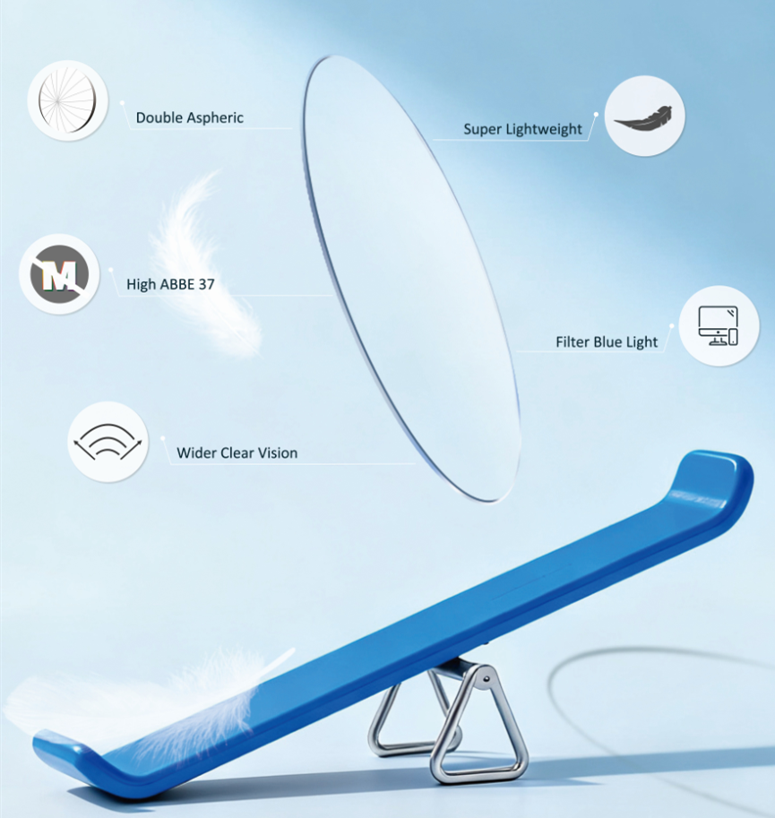 S to lečo smo predstavili preboj v optiki z visokim indeksom. Z združitvijo ultralahke dvojne asferične zasnove z izjemno optično natančnostjo ponujamo rešitev, ki ni le neverjetno tanka in lahka, temveč tudi praktično odpravlja periferno popačenje. To odgovarja na kritično potrebo po vrhunski kozmetiki in celodnevnem udobju za uporabnike z višjimi dioptrijami.